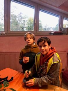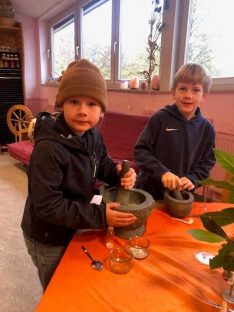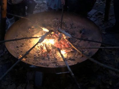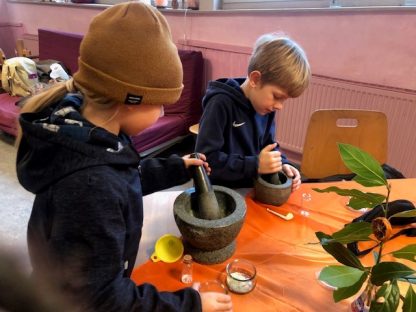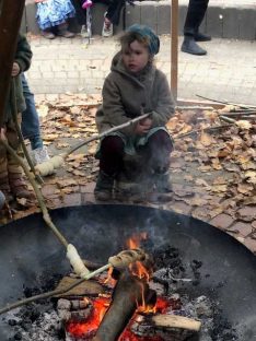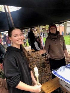 Auch die Jurte in der Schulhofmitte lud mit ihrem prasselnden Feuer und dem Tannenzweigenduft zum Verweilen ein. Wer mochte, durfte sich dort auch als Bäckerin oder Bäcker versuchen: Eine Portion Geduld brauchte es allerdings schon, bis das Stockbrot über dem Feuer eine appetitlich bräunliche Kruste bekam – noch einige Minuten später konnten die Nachwuchsbäcker dann endlich ihren duftenden Laib vom Stock ziehen und noch warm genießen.