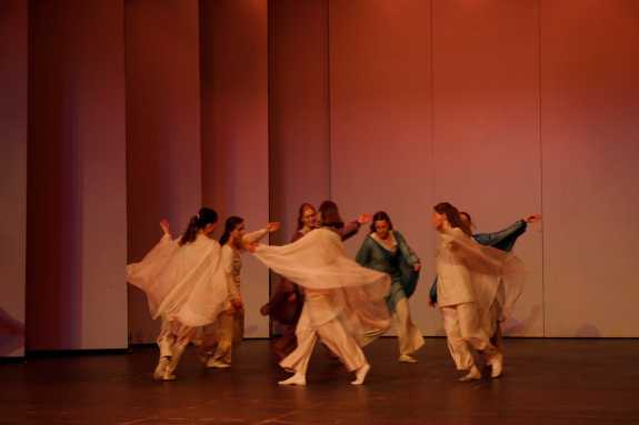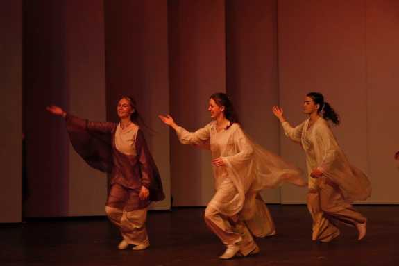 Die Generalprobe am Freitag verlief schon fast zu gut, aber wir waren optimistisch, dass es am Samstag genauso gut oder noch besser laufen würde. An diesem Tag trafen wir uns früh, um manche Abläufe noch einmal durchzugehen und um uns gut einzusingen und einzustimmen. Außerdem wurden von uns Fotos gemacht, wie wir in den Eurythmiekleidern unsere Darbietung machten.