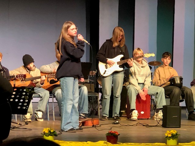Und so wurden Klein und Groß dann doch noch mit Highlights aus dem Unterricht unterhalten: Das große Trommel- und Percussionorchester beispielsweise vermochte mit seinen energiegeladenen afrikanischen Rhythmen sein Publikum mitzureißen; Unter-, Mittel- und Oberstufenchor erfreuten die Zuhörer virtuos mit beliebten Musikstücken, ebenso wie das Streichorchester der Oberstufe. Die Mittelstufenschülerinnen und -schüler des Gitarrenorchesters präsentierten ihre rockigen Stücke gemeinsam mit zwei Sängerinnen, die stimmlich sehr gut harmonierten.