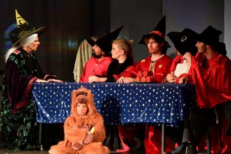 Das Team rund um Zauberschulleiterin Susanne Malik hat auch in diesem Jahr alles selbst übernommen: von Drehbuch und Regie über Kostüme und Bühnenbild bis hin zu Einlass und Rahmenprogramm. „Es war wie jedes Jahr eine Herausforderung; vor Allem, da es in diesem Jahr ein komplett neues Stück war“, erzählt die Oberhexe nach der ersten Vorstellung, „aber der Spaß und die Reaktionen geben uns recht: Es hat sich wieder gelohnt.“ Das Bühnenteam rund um Cordula Kauffmann, sind fleißig, unterstützen beim Schminken, dem Kostümieren und der Vorbereitung der Requisiten: „Eine Besonderheit ist, dass es nicht nur normale Bühnenrequisiten, sondern eben auch Zauberrequisiten gibt.“ Denn das macht das Zaubertheater aus: Es ist ein Theaterstück, in dem Zaubereielemente in die Handlung mit eingebaut sind. Und wo ginge das besser als in der magischen Welt von Terry Pratchett!